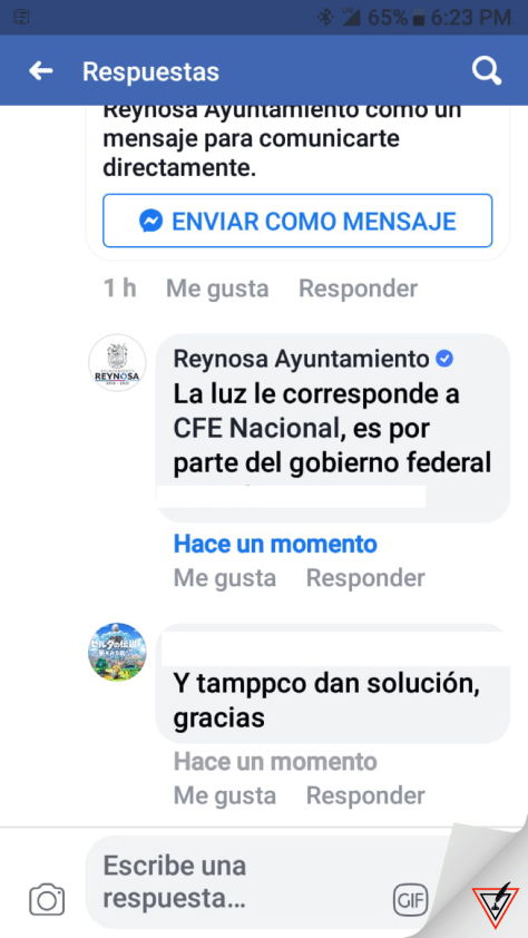 Ante la desesperación se buscó la ayuda del ayuntamiento de Reynosa a través de su página de facebook, pero fueron ignorados.