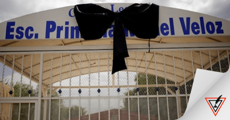 En la escuela primaria Rafael Veloz, en Ciudad Juárez, Chihuahua, colocaron un moño negro por la muerte de la maestra Elsa Mendoza. Reuters