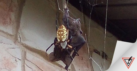 Annette Alaniz, subió a su cuenta de Facebook un video en el que se observa el momento cuando llega a su casa y se encuentra con una aterradora decoración. Un murciélago atrapado en la tela de una araña bananera.