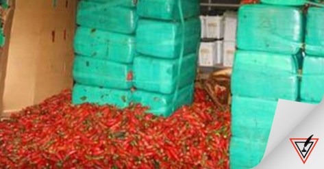 Dentro de las cajas de pimientos, los agentes descubrieron más de 300 paquetes verdes en los que se detectó marihuana. Las autoridades estiman que las drogas incautadas valen $ 2,3 millones.