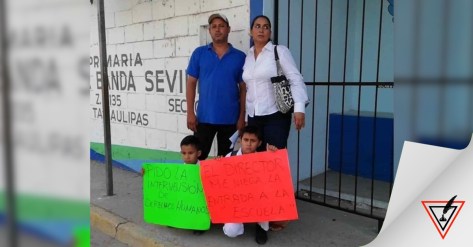Altamira,Tam.- Dos alumnos de la escuela primaria Eusebia Banda Segovia en Altamira, protestaron junto con sus padres porque se les impidió el ingreso a la escuela, presuntamente por la deuda de cuotas escolares.