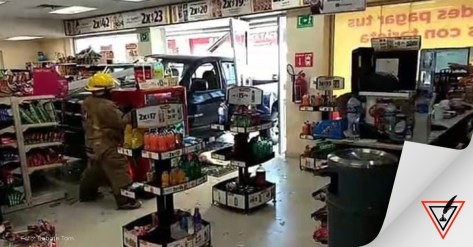 Tampico,Tam.- Un hombre impacta su camioneta en una tienda oxxo en Tampico, quedando casi por completo el vehículo en el interior de la tienda dé autoservicio.