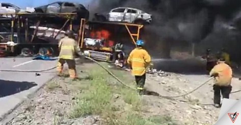 Ciudad Victoria, Tamaulipas.- Dos personas perecieron quemadas y prensadas luego de quedar en medio de dos tráiler tras un choque múltiple.