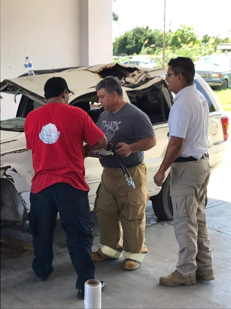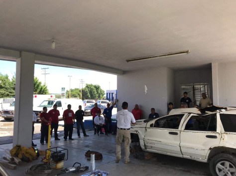 A través de redes sociales se comparten algunas de las imágenes donde se pueden apreciar a los integrantes de Protección Civil y Bomberos, haciendo uso de diferentes herramientas en un auto chatarra que fue adquirido para el aprendizaje.
