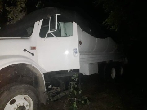 Al llegar al lugar, ya se encontraban elementos de la SEDENA y de Seguridad Física de PEMEX, donde fue hallado, cubierto con una malla negra, un camión cisterna con capacidad de 20 mil litros, color blanco, con placas de circulación particulares del estado de San Luis Potosí, mismo que estaba conectado con una manguera a un ducto de Petróleos Mexicanos (PEMEX). En su interior, ya contaba con aproximadamente 200 litros del combustible.