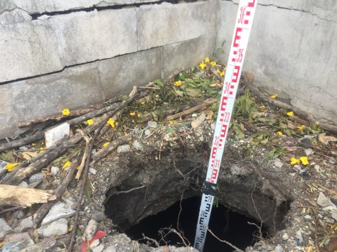 H.Matamoros,Tam.-Por lo menos son tres metros de profundidad lo que tiene el socavón detectado hace unos días en la vivienda con el número 26 de los limites de la colonia Puerto Rico en Matamoros y que alarmo a los vecinos, quienes iniciaron en su momento con el reporte ante la Junta de Aguas y Drenaje, para posteriormente solicitar una evaluación de riesgo por parte de Protección Civil Municipal.