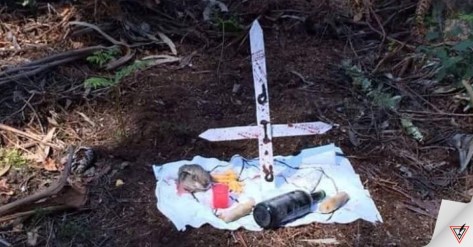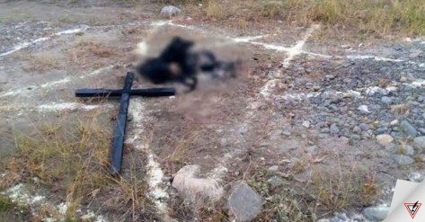 La víctima estaba en el centro de un dibujo de una estrella de cinco picos y una tela negra que lo cubría.