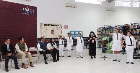 Y para dar prueba de su trayectoria, ataviada con el vestuario que distinguió a Sor Juana Inés de la Cruz, -un hábito color café- la maestra Lidia Salazar Cerda acompañada de sus alumnos presentó una poesía coral dedicada a Juana Inés de Asbaje y Ramírez de Santillana, quien nació un 12 de noviembre de 1648.