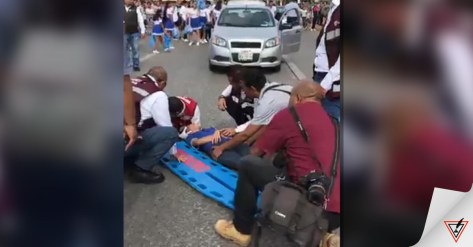 El percance se registró frente a la presidencia municipal donde los jóvenes fueron atendidos de manera inmediata por paramédicos de la Cruz roja y personal de protección civil.