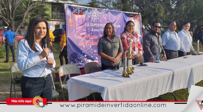 H.Matamoros,Tam.-Con la participación de 20 equipos, la Diputada Local, Ivett Bermea Vázquez, este viernes inauguró el Primer Torneo Navideño de Fútbol, mismo que organizó la Supervisión Escolar número 146 y que dirige el profesor Andrés Andrade Márquez.