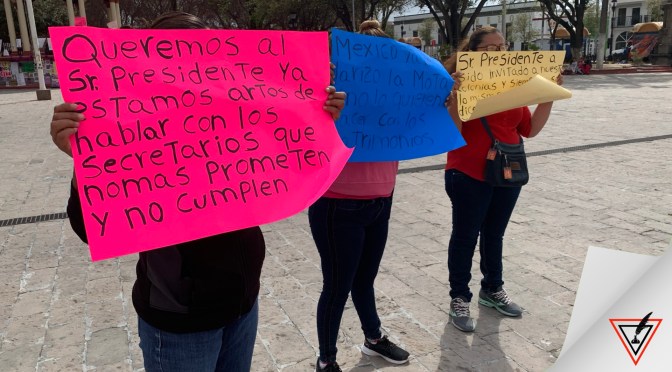 H.Matamoros.- Habitantes de colonias irregulares llevaron a cabo una manifestación frente al palacio municipal solicitando una audiencia con el alcalde Mario López, para pedirle terminen los trabajos de encalichado en calles del asentamiento irregular Rodolfo Torre.