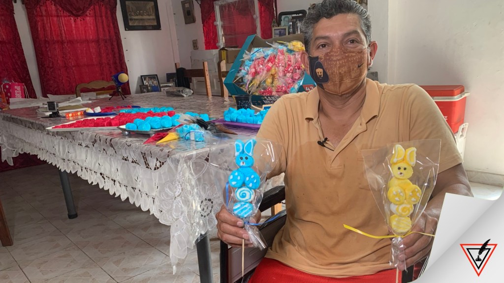Al principio todo fue difícil para él, sobre todo por el impacto emocional que su enfermedad le provocó, sin embargo, con la ayuda de su familia y amigos ha salido adelante volviéndose un emprendedor… un creador de brochetas de bombón para diferentes temporadas del año y ante la llegada de la pascua, en estos días elabora las brochetas con figuras de conejos.
