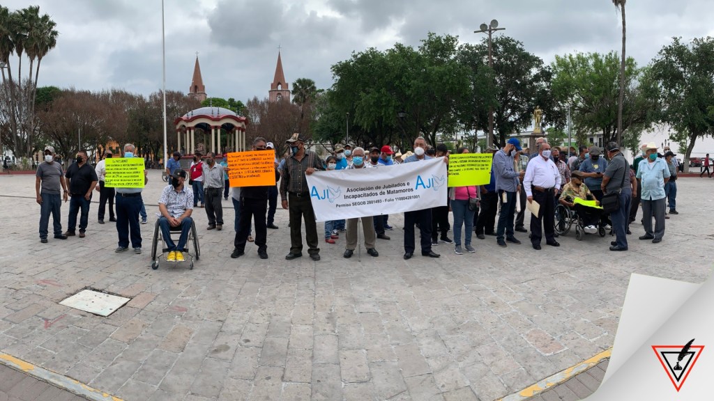 H.Matamoros.- La asociación de jubilados e incapacitados de Matamoros llevan a cabo una manifestación frente al palacio municipal para solicitar el reembolso del pago que uno de los integrantes realizó en una clínica particular porque el ayuntamiento les suspendió la atención en el hospital general Alfredo Pumarejo.