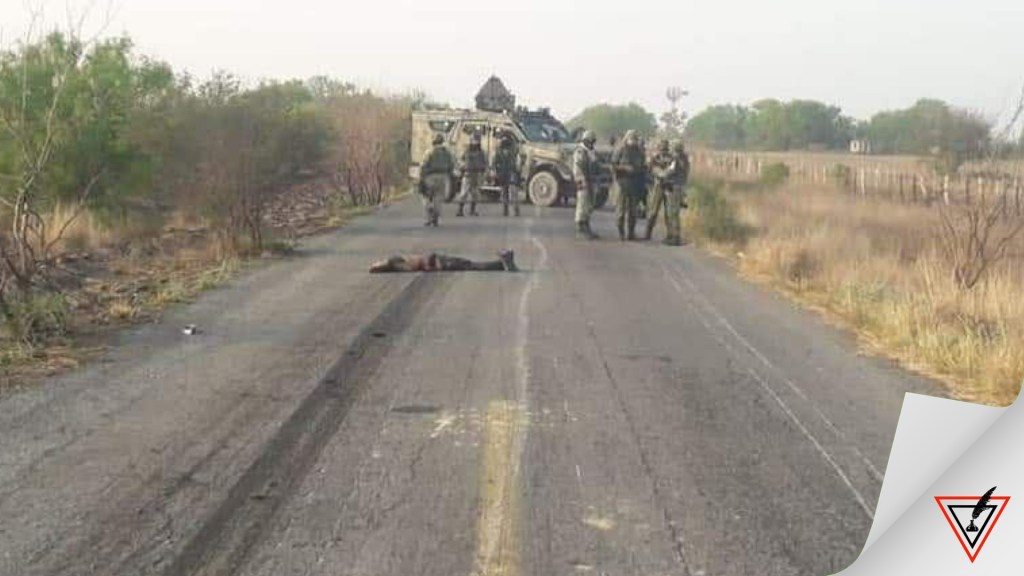 Extraoficialmente se habla de al menos del hallazgo de 10 cuerpos sin vida, esparcidos a varios metros entre el monte, la carretera y al interior de camionetas quemadas, así como de 7 camionetas con blindaje artesanal totalmente calcinadas.