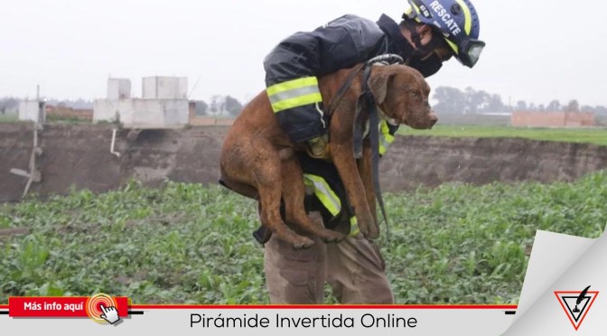 A pesar de una intensa lluvia en la comunidad de Santa María Zacatepec, esta tarde fueron rescatados los dos perritos que cayeron en el socavón de Puebla.