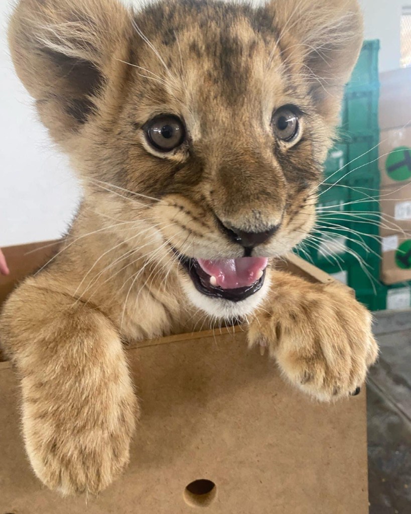 En un comunicado, la GN relató que al revisar la paquetería que ingresa al aeropuerto los agentes localizaron en el área de plataforma comercial “una caja de madera con orificios circulares de ventilación, donde era transportada una cachorra de león africano”.