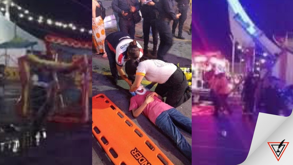 Guadalupe.- La canastilla de un juego mecánico en la Expo Feria Guadalupe se desplomó desde las alturas este martes. Los primeros reportes indican que hay cuatro personas lesionadas, de las cuales son dos menores y dos adultos.