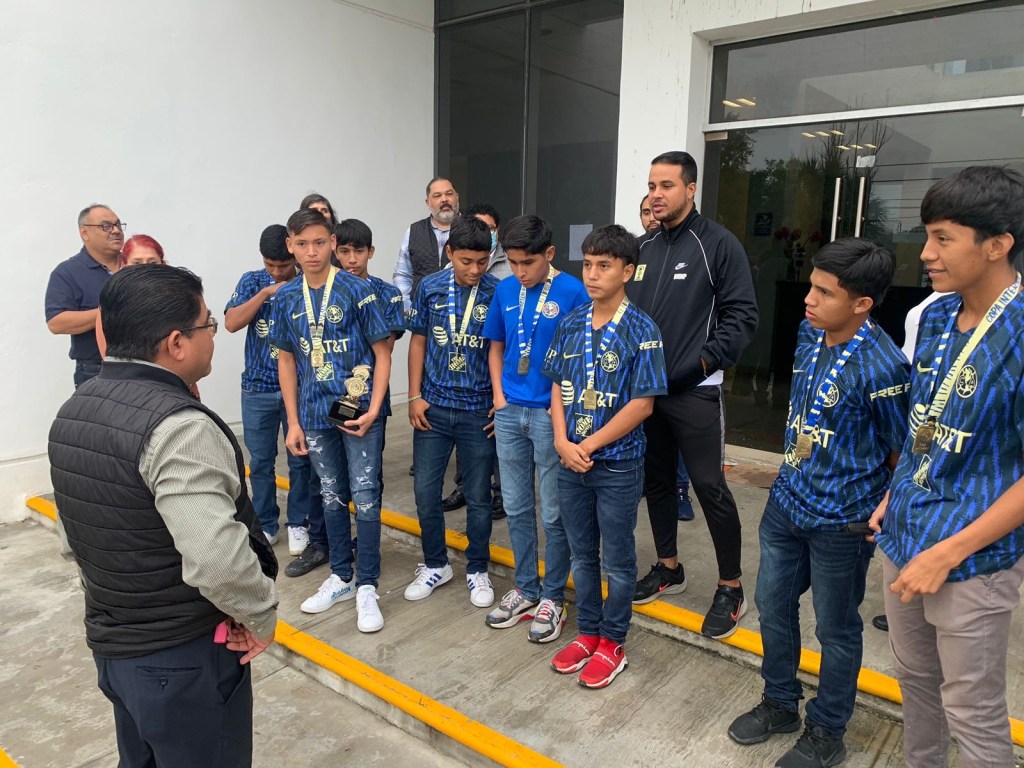 Al informarle sobre su reciente participación en la ciudad de México, donde se coronaron Campeones Nacionales de fútbol soccer en la categoría 06-07, el titular del Crede Matamoros se comprometió en donarles equipo deportivo para sus entrenamientos, así como gestionar ante el Centro de Alto Rendimiento un espacio para que tengan un lugar digno donde seguir con sus entrenamientos, ya que carecen de un espacio fijo donde hacerlo.