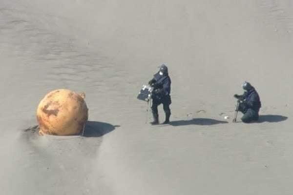 La policía acordonó el área en busca de otros objetos sospechosos y envió las fotos del objeto a expertos de las Fuerzas de Autodefensa y de la Guardia Costera.