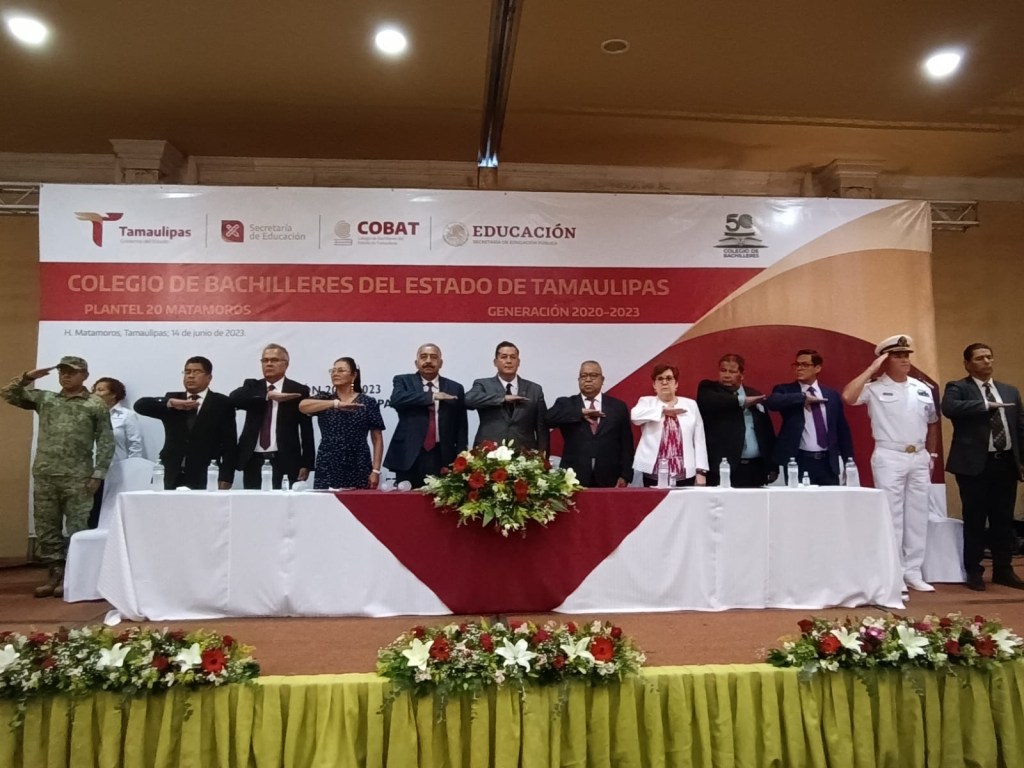 Con la entrega de diplomas y medallas a los estudiantes de excelencia de la generación 2020 – 2023, fue como se llevó al cabo la ceremonia de graduación del Colegio de Bachilleres de Tamaulipas (Cobat) plantel número 20 de Matamoros, generación que fue apadrinada por el Delegado Municipal de la Secretaría de Bienestar Social de Tamaulipas, Rafael Salas González.