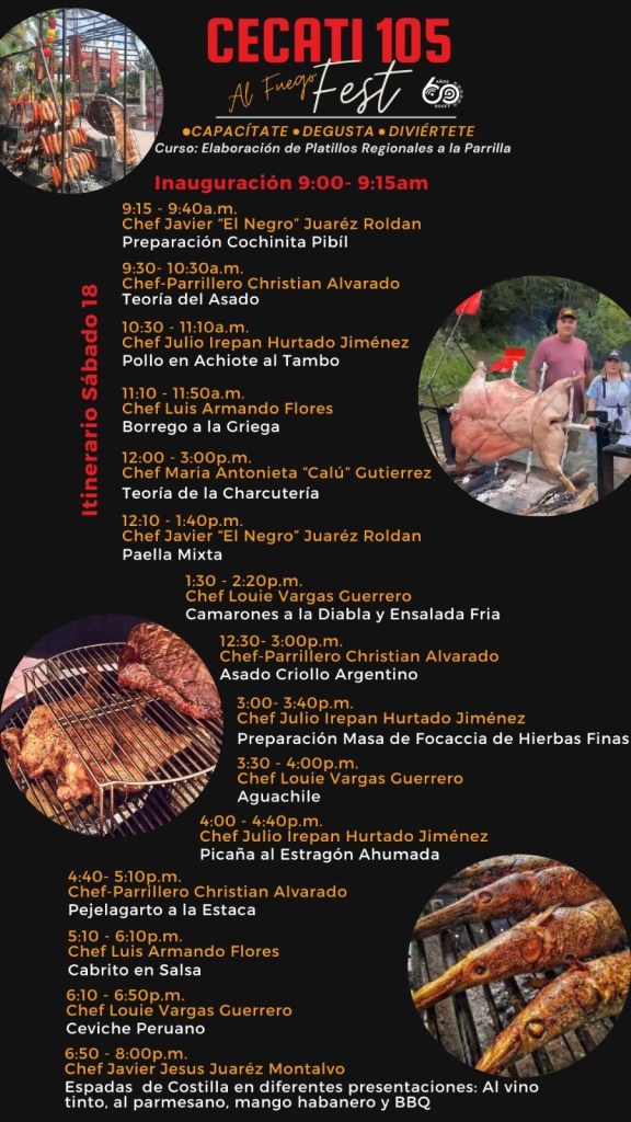 El CECATI 105 ofrece el primer curso taller de platillos a la parrilla, llamado Al Fuego Fest, con una duración de 20 horas. El objetivo es enseñar a los interesados en asar carnes, con la colaboración de ocho chefs parrilleros de talla nacional e internacional.