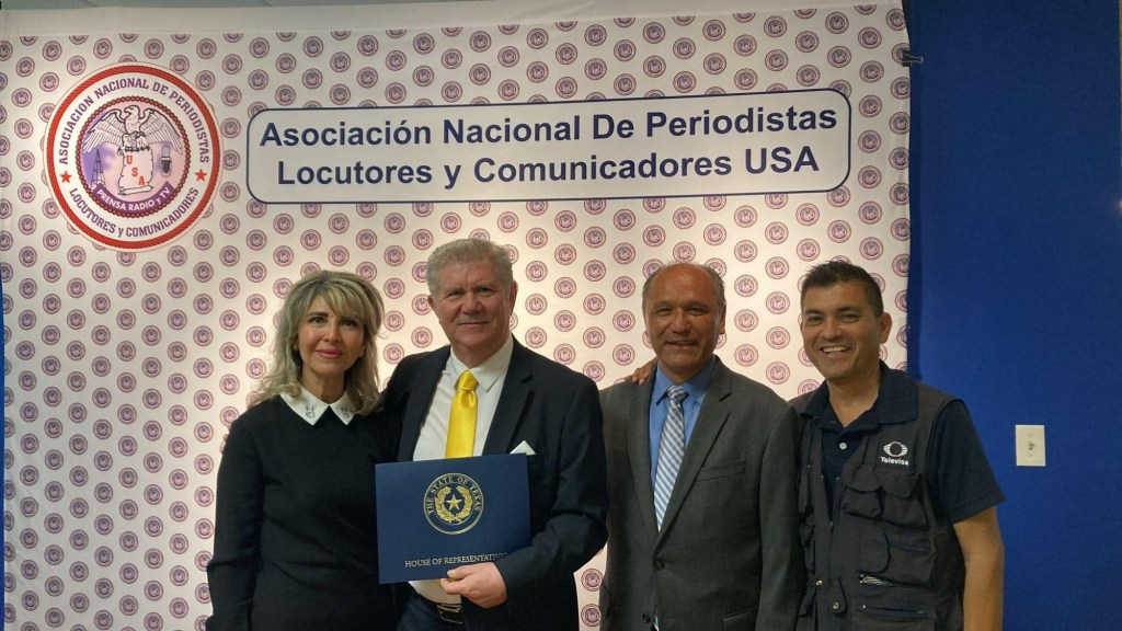 La Asociación Nacional de Periodistas, Locutores y Comunicadores de Estados Unidos otorgó el prestigioso premio “Honor a quien honor merece” al Lic. Fructuoso Sáenz, en reconocimiento a su excepcional carrera en la presentación de noticias y su contribución constante al bienestar social.