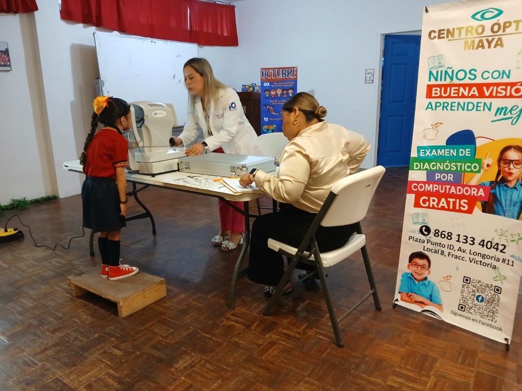 La maestra Gloría Cruz Murillo, directora de la Primaria «Argüelles», dijo que ésta campaña de salud visual gratuita fue autorizada por los padres familia y practicada por personal especializado del Centro Óptico Maya, misma que dirige la licenciada en optometría Brenda C. Torres Briseño.