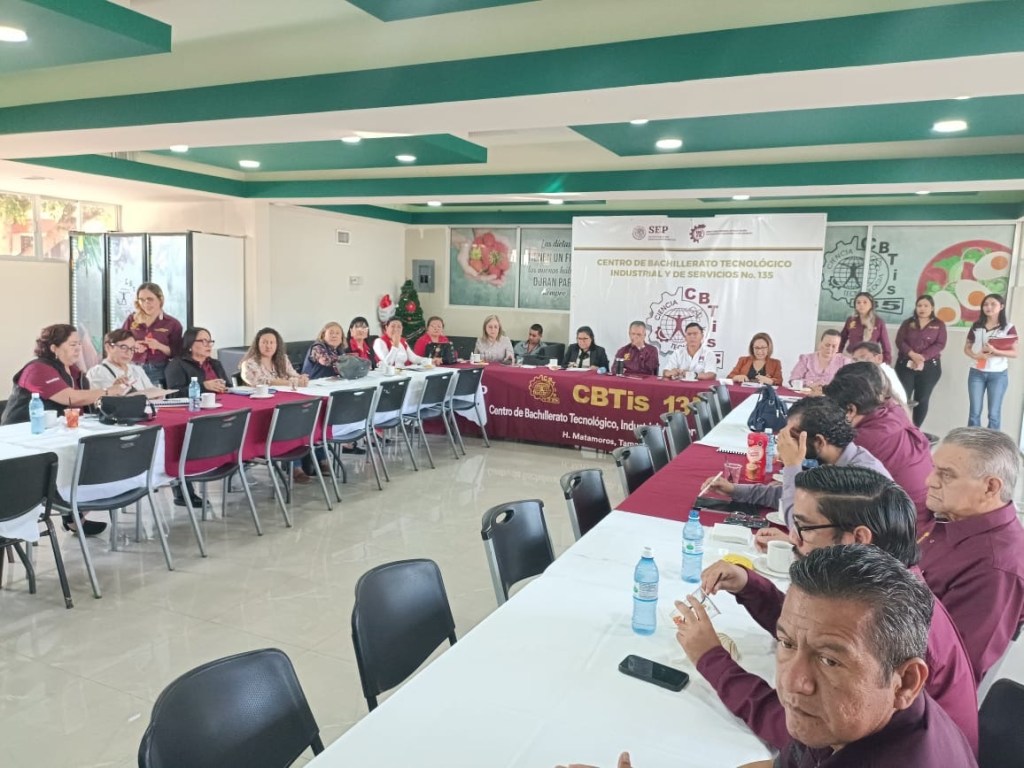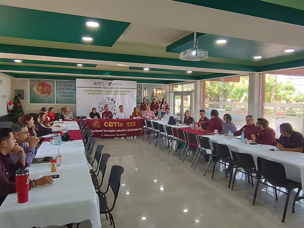 H.Matamoros,Tam.- A fin de informar sobre su oferta educativa, características del edificio escolar y convocatoria para un certamen académico, cívico y deportivo, el director del Cbtis 135 en Matamoros, maestro Rolando Cortés Delgado, la mañana de éste martes 10 de diciembre se reunió con directores de nivel secundaria de esta región, misma que se llevo a cabo en las mismas instalaciones de éste centro educativo.