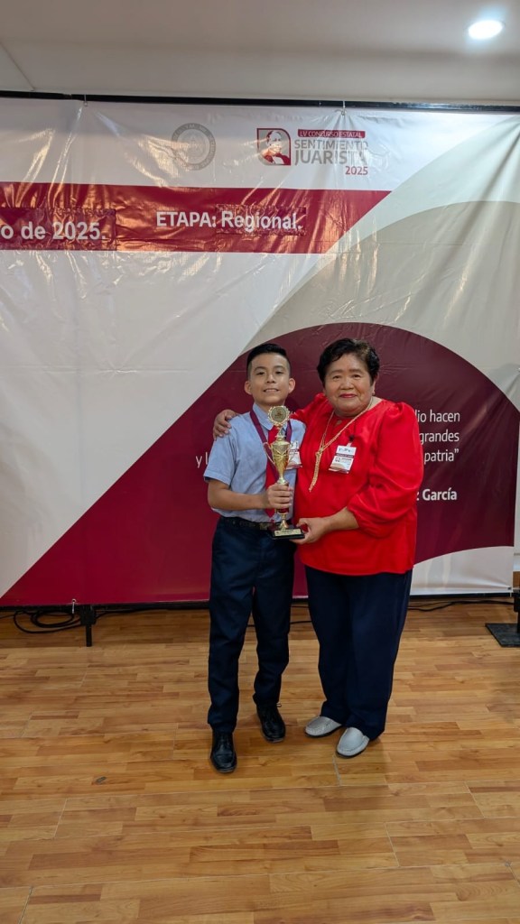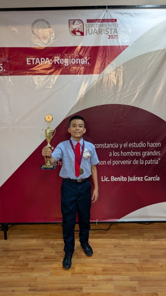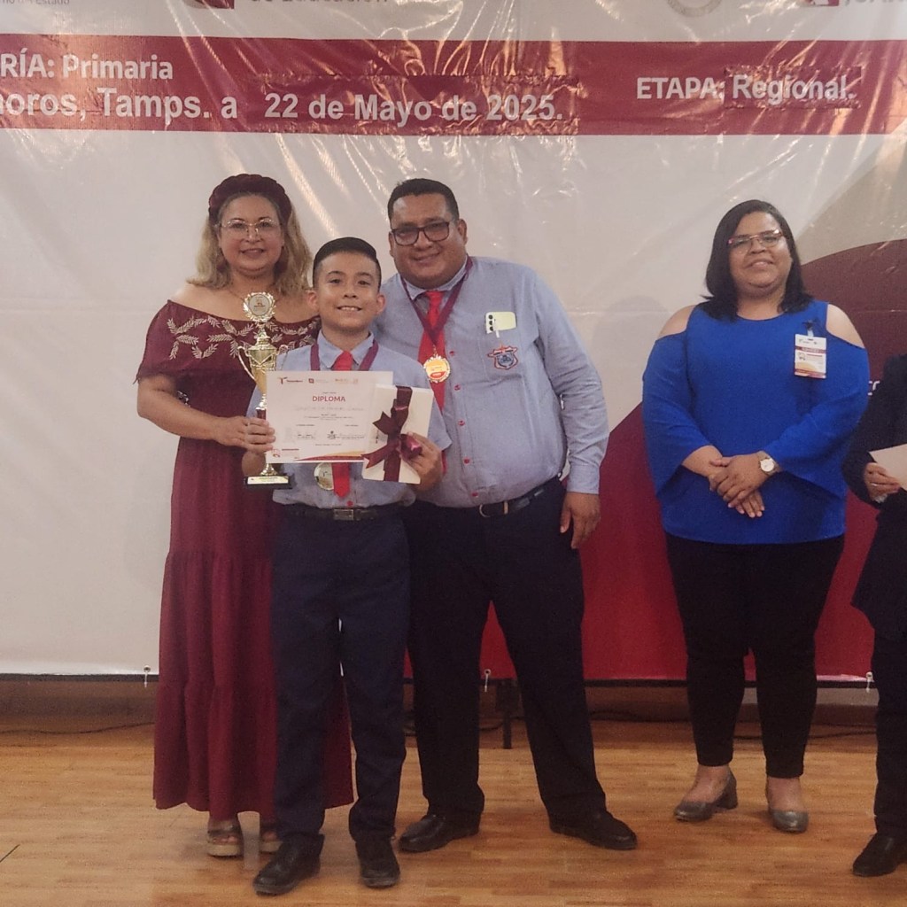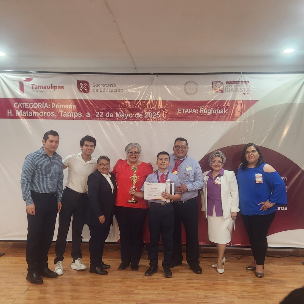 H.Matamoros,Tam.- El alumno Sebastián Leo Hernández Sánchez, estudiante de la Escuela Primaria «Adalberto J. Argüelles», obtuvo el primer lugar mediante el certamen de oratoria «Sentimiento Juarista» en su etapa regional zona norte.