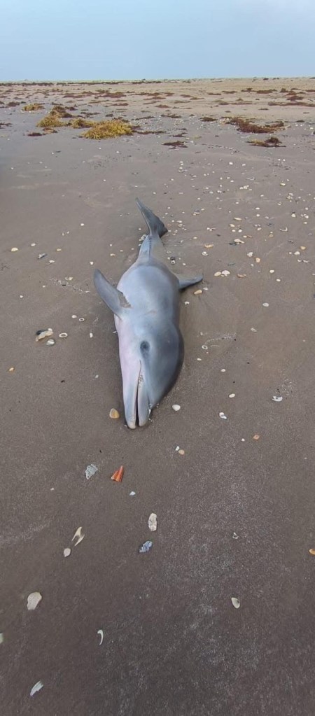 Matamoros, Tamaulipas – Una cría de delfín nariz de botella fue hallada sin vida este sábado en la costa de playa Bagdad por el equipo de la asociación ambiental Conibio Global, durante una inspección rutinaria.