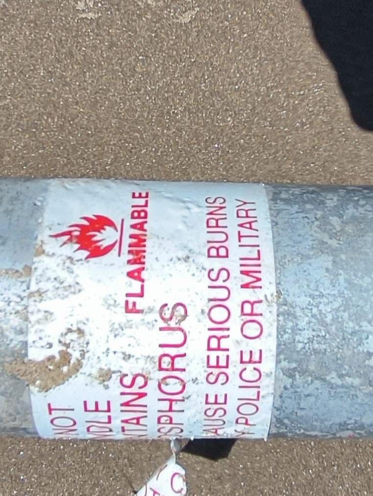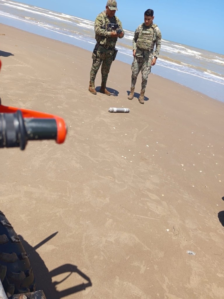 H.Matamoros,Tam.- Un hallazgo inesperado ha puesto en alerta a visitantes y autoridades en Playa Bagdad. Durante un recorrido rutinario, integrantes de la agrupación Conibio Global descubrieron un artefacto tipo misil, un objeto que representa un alto riesgo debido a su contenido de fósforo blanco, una sustancia inflamable y tóxica.