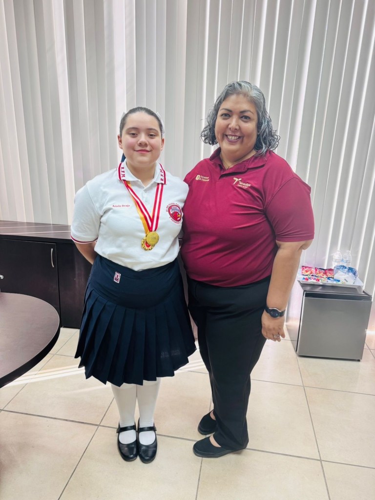 H.Matamoros,Tam.-Luego de obtener el primer lugar internacional mediante el XI Concurso Internacional de Oradores en Lima, Perú, la jóven estudiante de la Escuela Preparatoria Federal por Cooperación «Ricardo Flores Magón», Vaania Ocejo Lucio, se presentó a las instalaciones del Centro Regional de Desarrollo Educativo, para agracer todo el apoyo brindado por la titular del Crede en Matamoros, maestra Mara Castillo Marín, pues ella fue el enlace con el Presidente Municipal, José Alberto Granados Fávila.