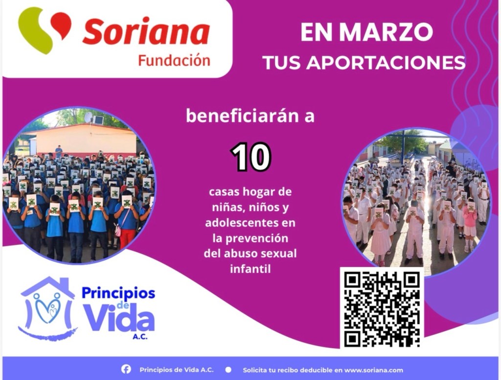 H. Matamoros, Tamaulipas.– Proteger a la niñez es una responsabilidad compartida. Con ese compromiso, Principios de Vida A.C. fue seleccionada como organización beneficiaria de la campaña Fundación Soriana “Aportación de Clientes Soriana Fundación 2026”, iniciativa que permitirá fortalecer acciones de prevención de violencia sexual infantil en casas hogar de Matamoros.